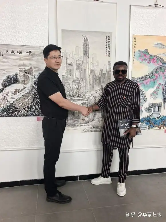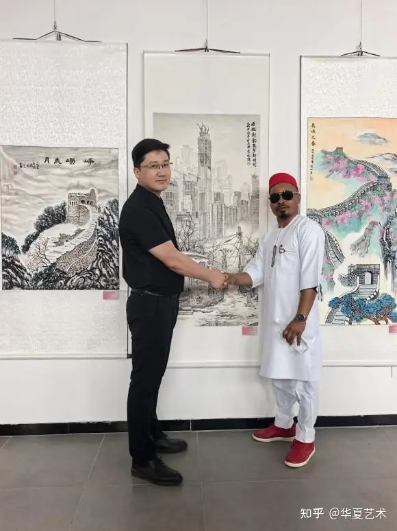 李树杰和尼日利亚联邦共和国驻华使馆公使级代表 陆义先生在作品前合影留念