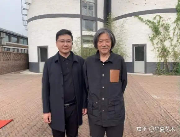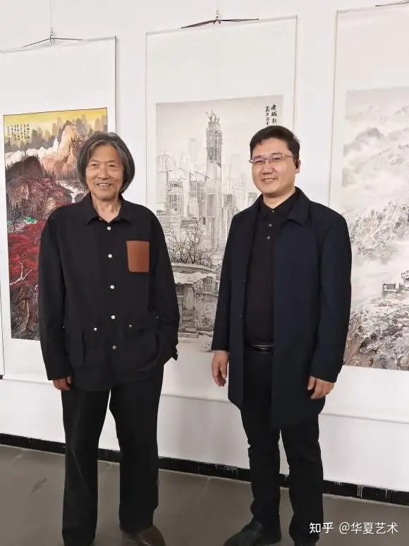 李树杰先生和冰雪长城画派创始人高明先生在作品前合影留念