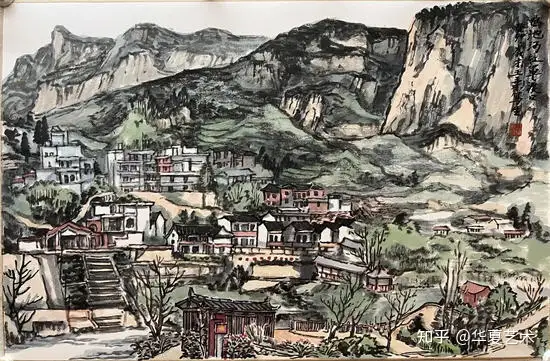 王乘的艺术实践,是一场与自然对话的永恒修行。他每年春秋两季必携学生深入黔地苗乡、太行绝壁、江南水巷,以千余幅写生作品为证,将“师法自然”推向极致。靖边丹霞的苍茫、六车河峡谷的奇崛、娘娘山湿地的温润,皆在其笔下化为墨色交响。他主张“写生是笔墨与自然的博弈”,拒绝程式化的摹写,而是以“诗情画意”重构山水意象,如《发哈村的清晨》中,水墨设色交融,晨曦与炊烟共舞,既见宋画的静谧,又显当代的鲜活。
