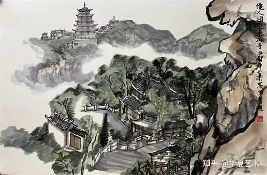 仙人洞望东山寺,纸本,2024年,65x45cm