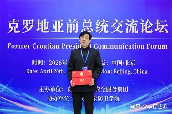2026 年 4 月 20 日,北京春意盎然,一场汇聚国际目光的文化盛宴 —— 克罗地亚前总统交流论坛盛大启幕。本次论坛由安全感国际安全服务集团主办、国际安全防卫学院协办,以 “文明互鉴・共向未来” 为核心,聚焦中克深度合作与文化交流。中国当代著名书画家毛希文老师受邀出席本次盛会,与克罗地亚前总统伊沃・约西波维奇阁下面对面交流,以艺术为桥梁,推动中克两国文化互鉴与民心相通。