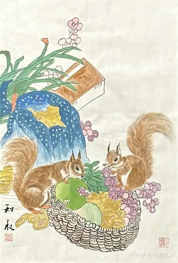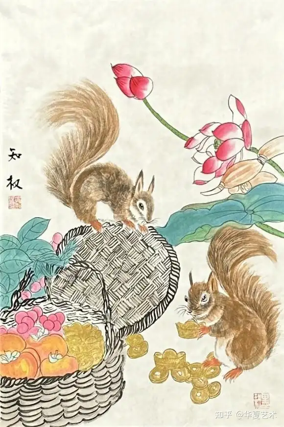 黄知权当代工笔花鸟与民俗吉祥画创作者,主攻彩墨花鸟、瑞兽与财神题材。作品以线条灵动、设色明快见长,既承续传统工笔的雅致细腻,又融入民俗绘画的喜庆吉祥,尤擅以松鼠、蔬果、财神入画,传递平安富足、喜乐安康的美好寓意。