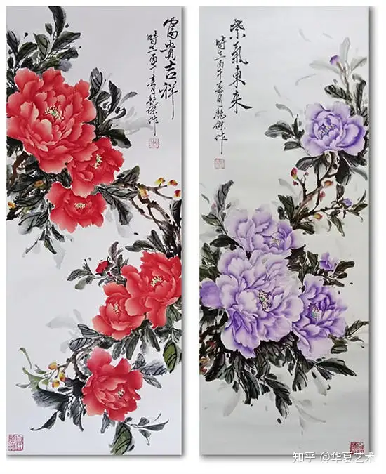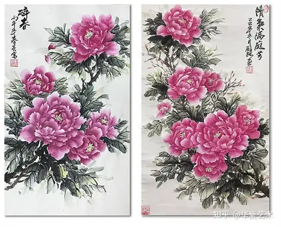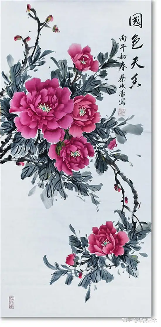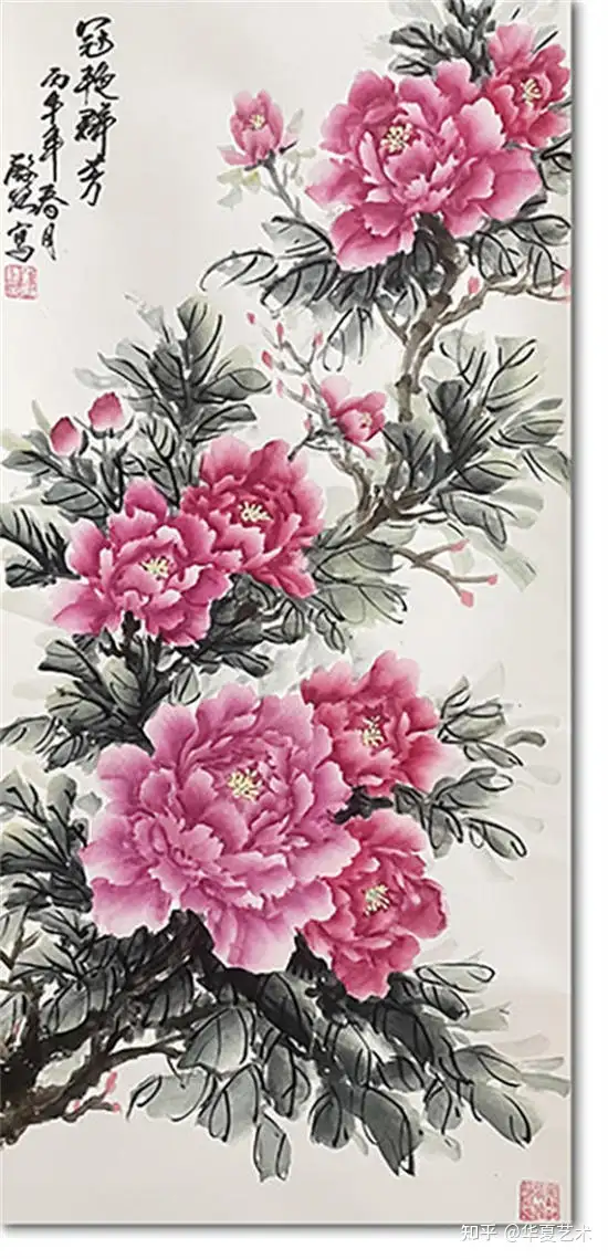 一次偶然的邂逅,改变了俊豪的艺术方向。那日观画展,偶遇会派牡丹创始人李会老师。但见其笔下牡丹,不落俗艳,别开生面——花瓣如霞似锦,叶脉含风带露,仿佛有香从纸上溢出。俊豪为之倾倒,遂拜于李会先生门下,从此醉心于牡丹一题。日写夜思,揣摩其形神,体会其风骨,力求以笔墨写尽牡丹的雍容与清雅。