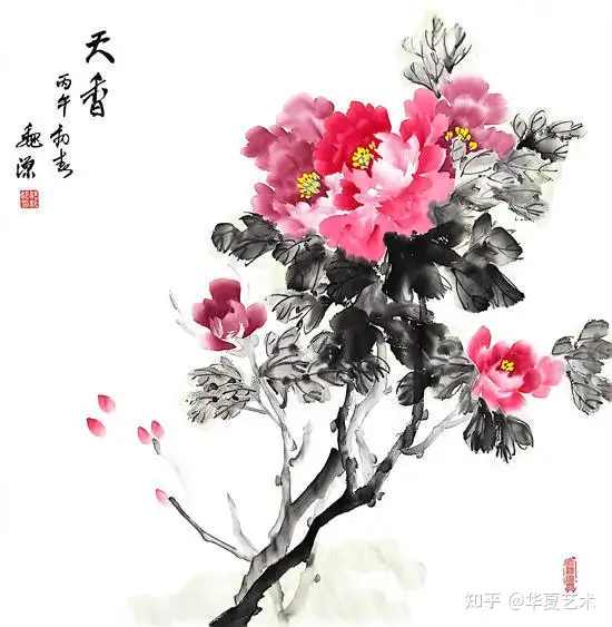 魏媛媛老师作为深耕中国画领域多年的艺术家,以其精湛的笔墨技法和独特的艺术表达,在众多作品中脱颖而出。她的牡丹作品《天香》以明艳的色彩、灵动的笔触,勾勒出牡丹雍容华贵、国色天香的神韵,既展现了中国花鸟画的传统精髓,又融入了新时代的艺术审美,寓意着繁荣昌盛、吉祥如意,也象征着中克两国友好交往的美好愿景。