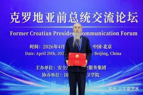 2026 年 4 月 20 日,北京春意盎然,一场汇聚国际目光的文化盛宴 —— 克罗地亚前总统交流论坛盛大启幕。本次论坛由安全感国际安全服务集团主办、国际安全防卫学院协办,以 “文明互鉴・共向未来” 为核心,聚焦中克深度合作与文化交流。中国当代著名书画家逯跃松老师受邀出席本次盛会,与克罗地亚前总统伊沃・约西波维奇阁下面对面交流,以艺术为桥梁,推动中克两国文化互鉴与民心相通。