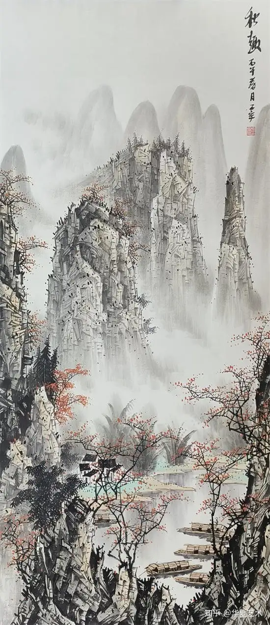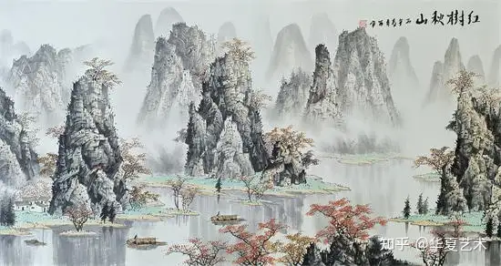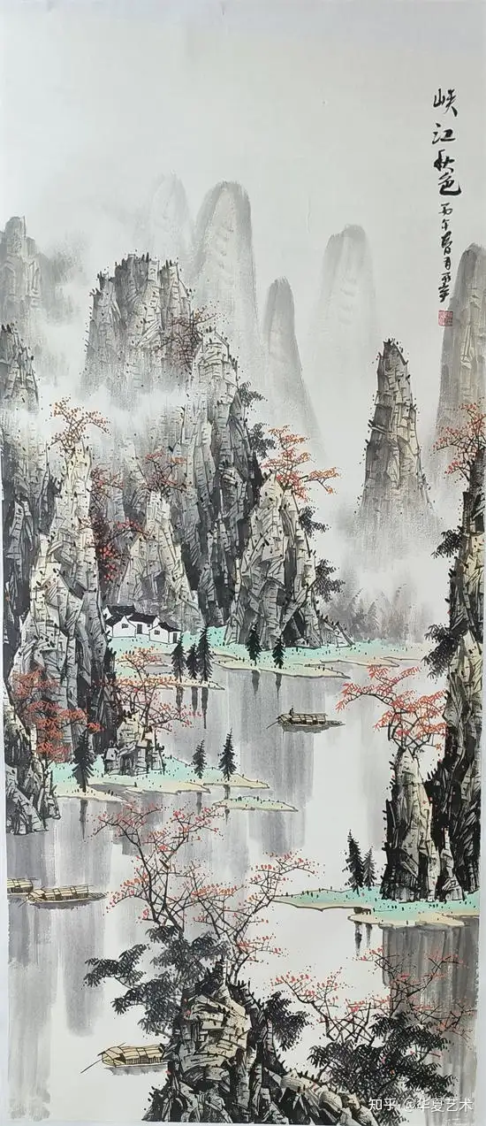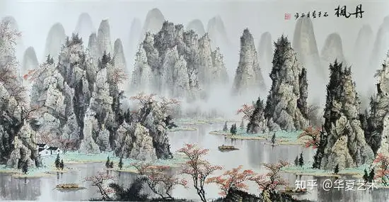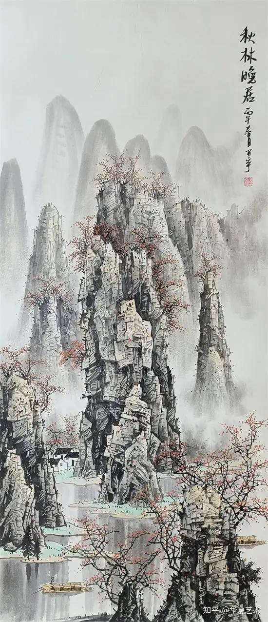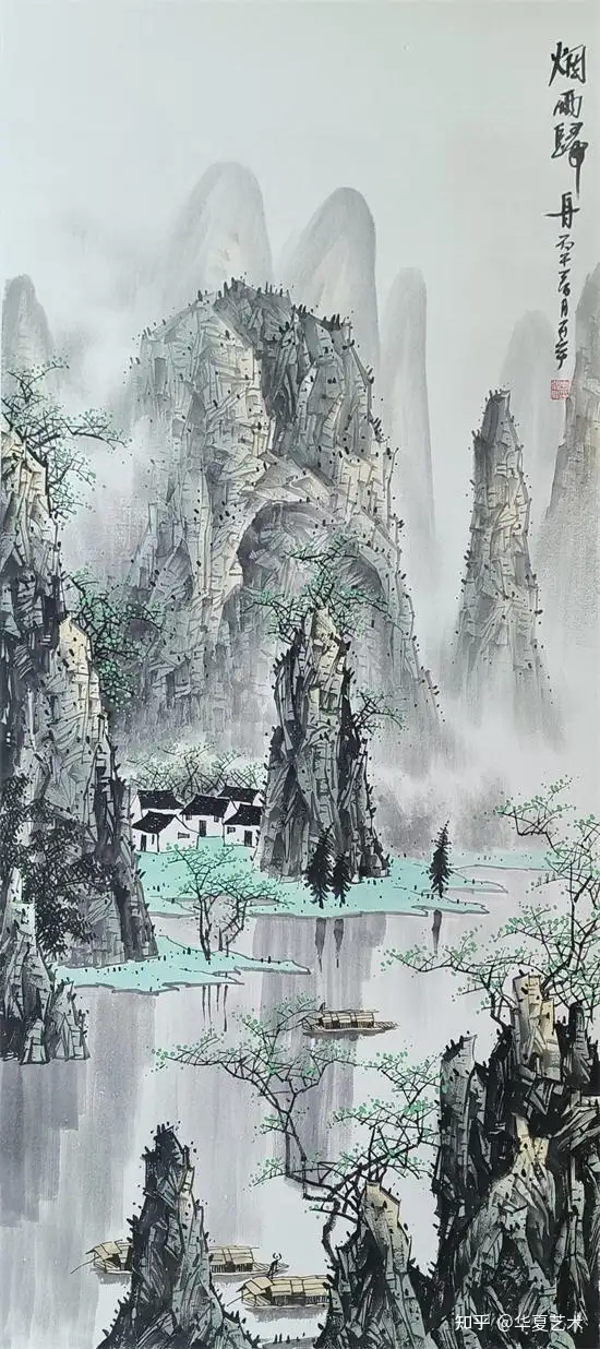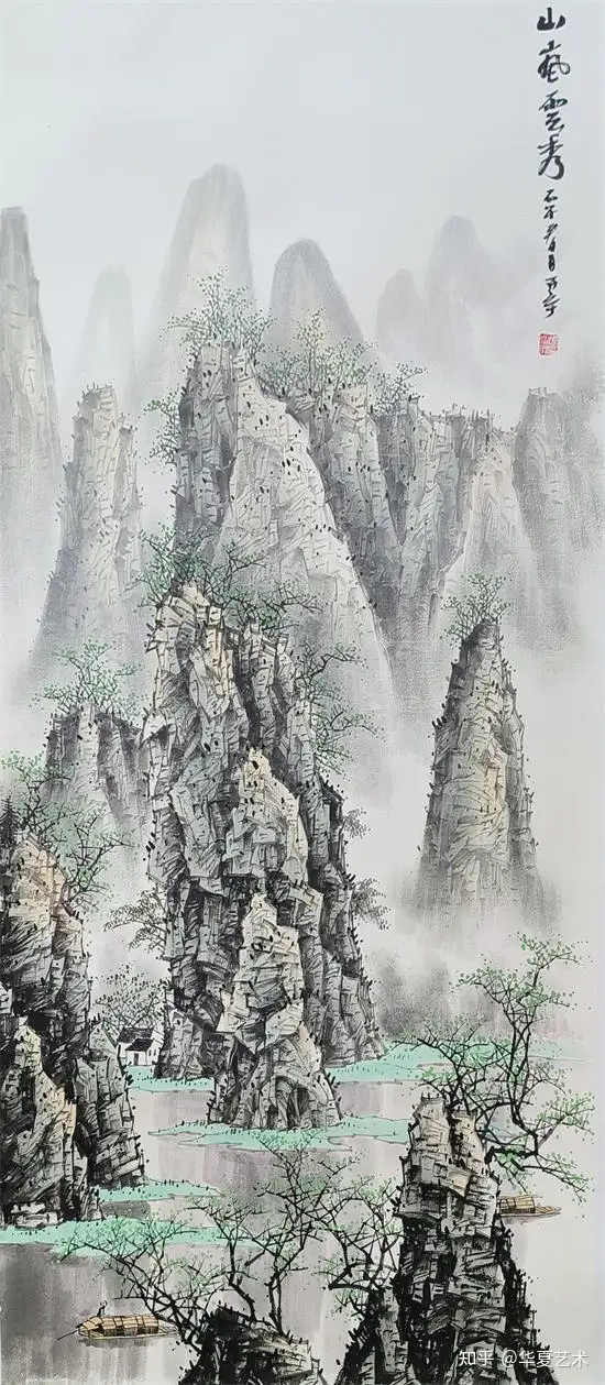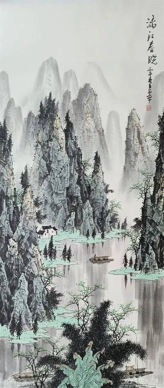 他笔下的山水,气势磅礴,灵动洒脱。其笔下山水,奇峰耸立,碧水横生,墨色淋漓苍劲,青绿淡雅温润。线条或劲健如铁,或轻柔似云,虚实掩映间,山水既有北国之雄奇,又含江南之秀润,远观气象万千,近品笔墨精妙,尽显漓江写意山水的开阔胸襟与自然气韵。