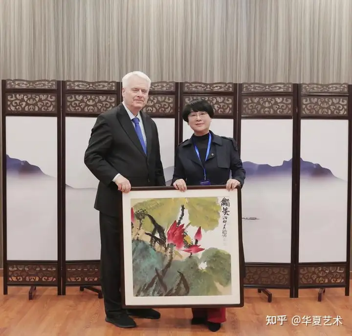 王玮老师表示,《和美》能得到克罗地亚前总统的收藏,是莫大的荣幸,也是中国书画文化走向国际的重要契机。荷花是中国文化的经典符号,希望通过这幅作品,让克罗地亚民众更直观地感受中国艺术的魅力,进一步增进两国人民的文化认同与情感联结。