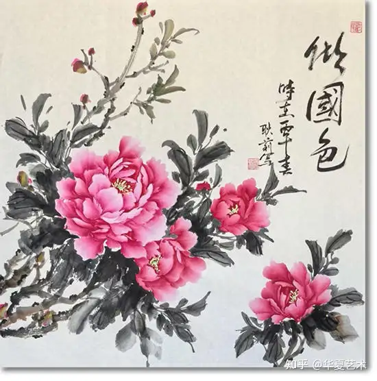 花开锦绣 娉婷绽放 飘逸洒脱 不拘一格的会派牡丹——会派牡丹的喜爱者 耿莉,女,1974年出生,河北省辛集市人,自幼喜爱书法和绘画。学生期间,在书法老师王君的教授下,更喜爱上了书法和绘画,由于参加工作后的种种原因没能深入学习。在一次偶然的机会中接触到了会派牡丹,其灵动、洒脱、飘逸、奔放、不拘一格的画风深深吸引了我,自此,开始了学习画牡丹并深醉其中。李会老师每次的鼓励话语是我学习前进的动力,在老师的无私倾心公益传授和指导下,在工作之余的勤学苦练中,看到了自己进步和成长,也深刻体会到了会老师说的“学无止境”的含义。为了更好的进步和成长,亲身奔赴到老师身边精进学习,在老师的亲自点拨下,绘画技能有了质的飞跃。